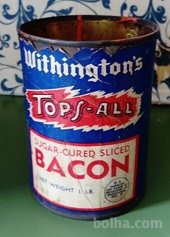 Withington 's tops all bacon - ameriška vojaška pomoč v času komunizma po drugi svetovni vojni v obliki hrane. Konzerva je zelo težka za pošiljanje, ker je v njej strjena barva?