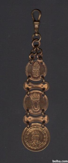 Naprodaj je Avstroogrski obesek s kovanci in priponko, dolžina 10,5 cm.
