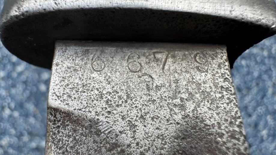 Proizvajalec: E. Pack & Söhne, Solingen (na rezilu jasno berljiva oznaka "PACK&S").Serijska številka in Wehrmacht sprejemni žigi (WaA orli) lepo vidni.Brez nožnice.Zelo dobro berljive oznake, kar potrjuje originalnost.