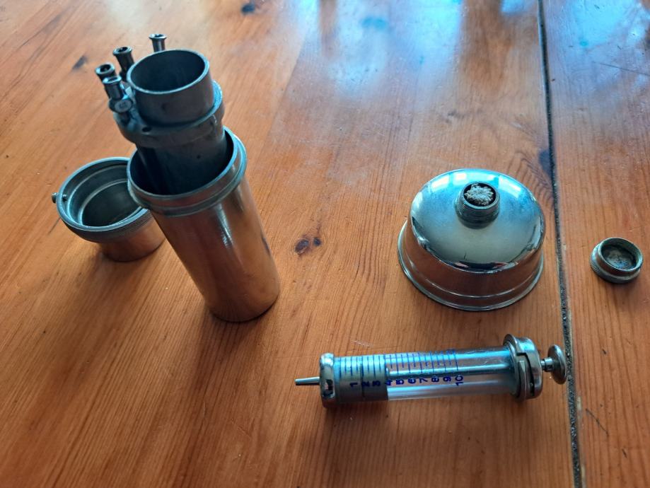 Odlično ohranjen set, ki vsebuje špiritni gorilnik za razkuževanje ter posebna posodica kjer je injekcija ter igle, narejeno za vojsko. Na njaj oznaka Sutjeska. Možna menjava za druge militarije. Osebni prevzem ali po pošti, kupec krije poštnino.041889491