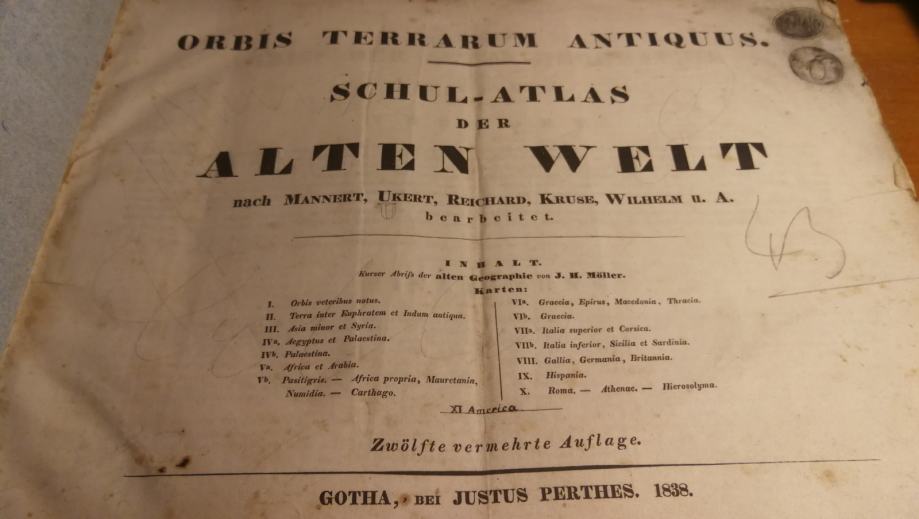 - star šolski atlas sveta 1838 leto, starinski atlas sveta iz leta 1838, vsebuje 14 starih kart,