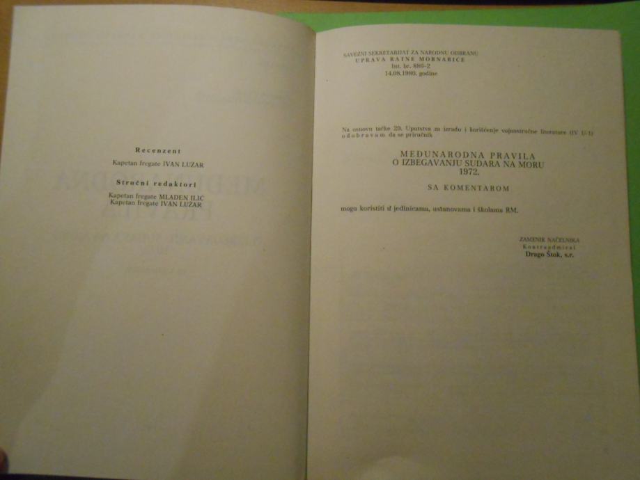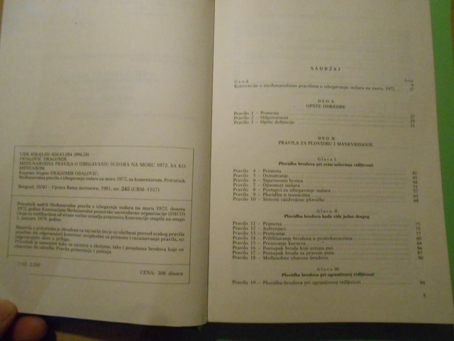 Knjiga međunarodna pravila za izbegavanje sudara na moru 1981 245 str