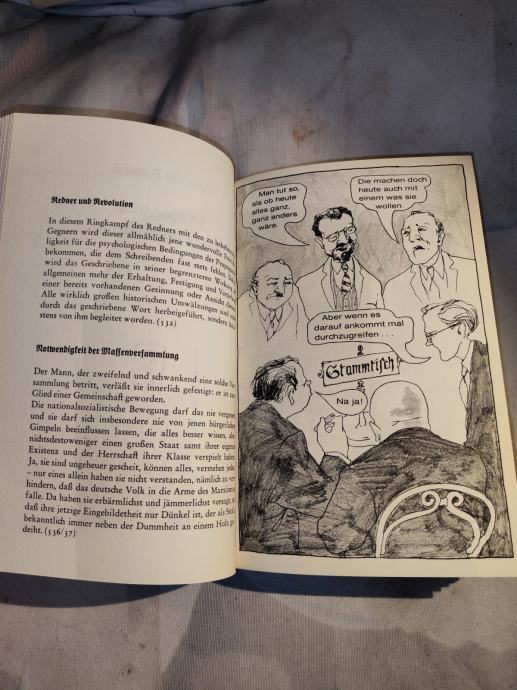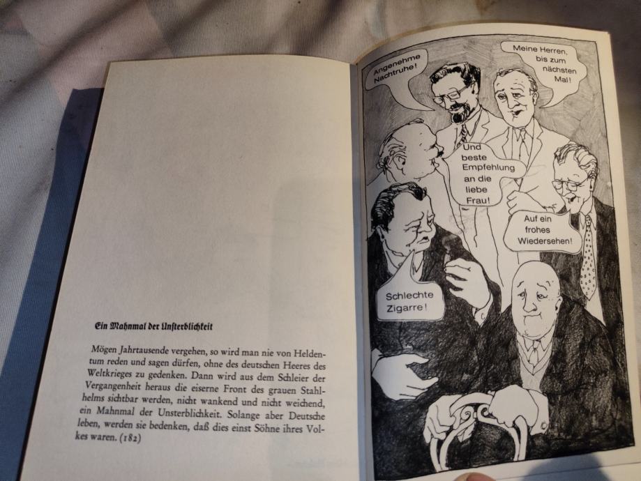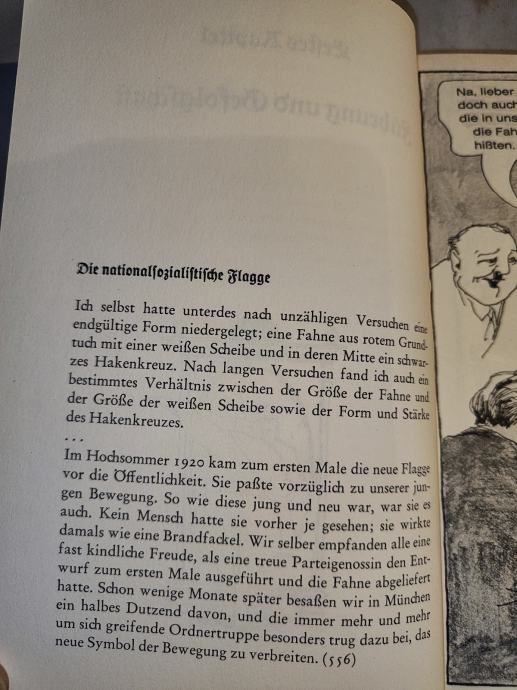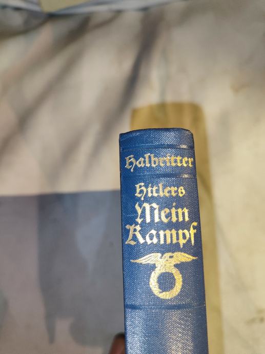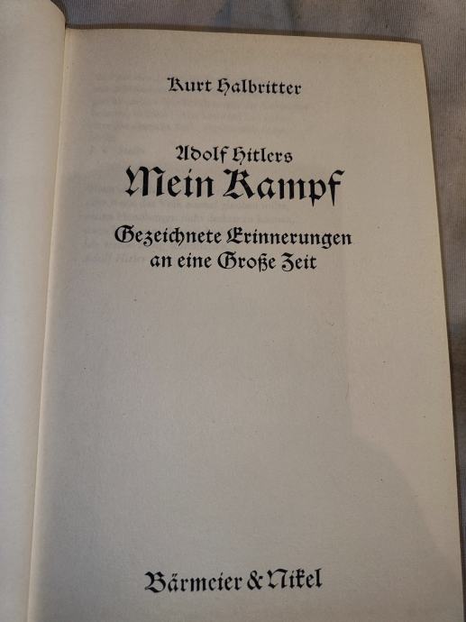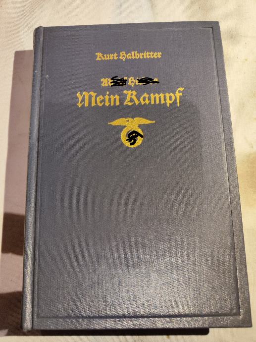 Prva izdaja (Erstausgabe) iz leta 1968 satirične knjige "A. H. Mein Kampf: Gezeichnete Erinnerungen an eine Große Zeit" avtorja Kurta Halbritterja, ki jo je izdal založba Bärmeier & Nikel. Gre za ostro protinacistično satiro v obliki karikatur (okoli 179 risb), ki ironizira nacistično vsakdanjost in citate iz pravega Mein Kampf.