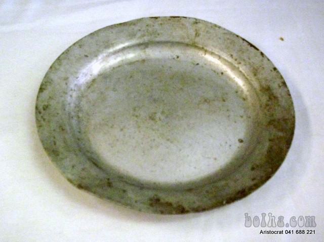Krožnik je iz aluminija. Vgravirano ima letnico 1959.