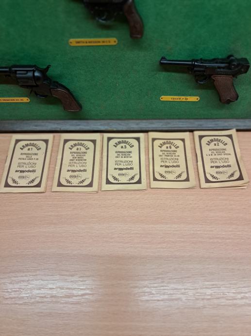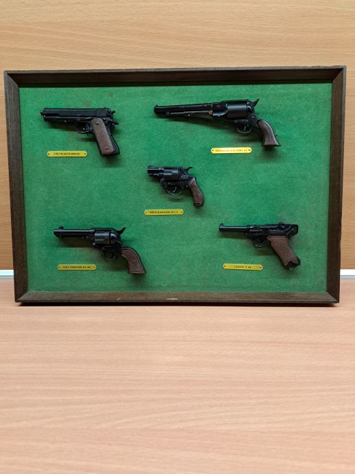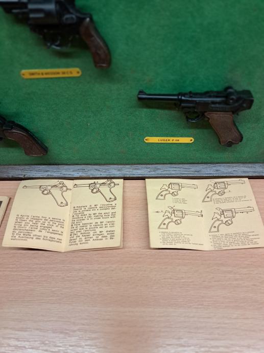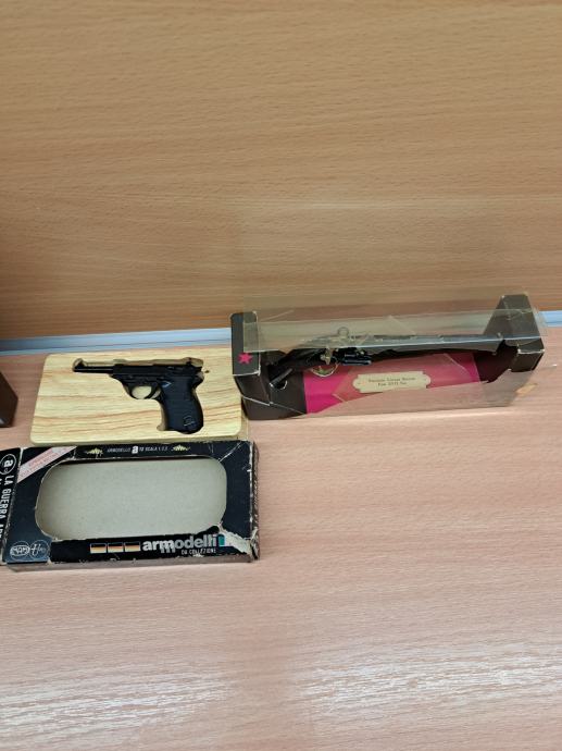 Prodam miniature pištol in revolverjev. Uporabljajo se lahko za pokanje tako imenovanih rdečih metkov. Cena za vse skupaj je 80 eur + poštnina ali osebni prevzem. Gsm 031 65 70 71