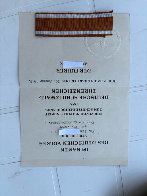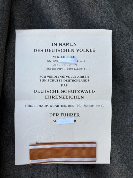 • 1x trak Schutzwall-Ehrenzeichen (brez medalje, vendar poimenovana