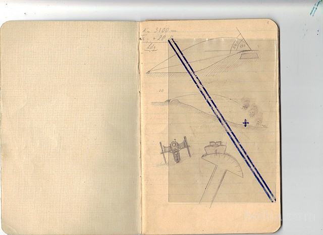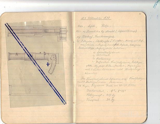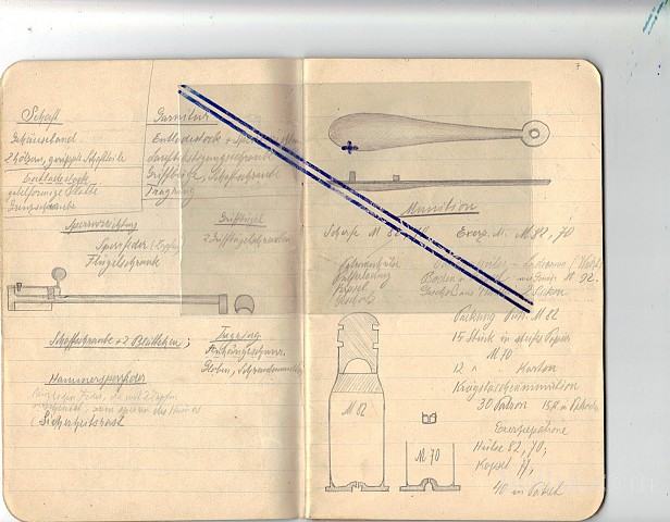 To je origalni zvezek z originalnimi risbami kasnejšega letalca Hermanna Holda, z ene strani ima 37 strani z mnogimi risbami in teksti o oborožitvi, z druge strani pa risbe in teksti iz balistike, artilerije, nemščina, odlična ohranjenost.