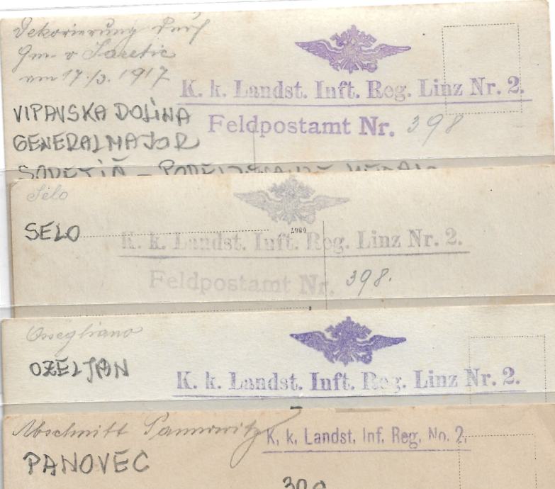 Fotorazglednice niso poslane, na vsaki je zadaj žig enote K. k. Landst. Inf. Reg. Linz Nr. 2 ter še napisi v nemščini.