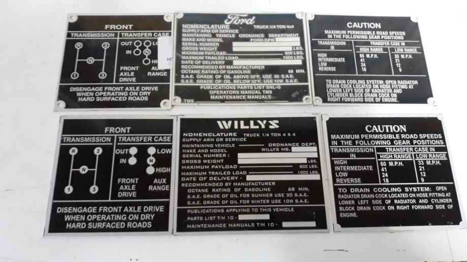 V setu so tri ploščice vidne na sliki za jeep MB Willys in Jeep GPW Ford