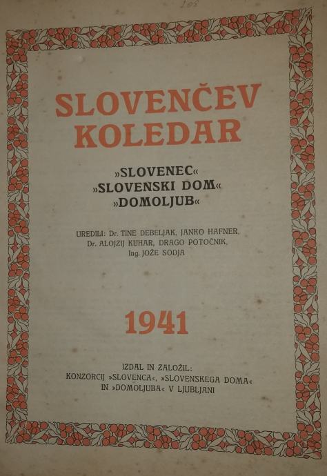 Pogled v viharno obdobje WW2 1941 KOLEDAR SLOVENČEV , 156 strni.