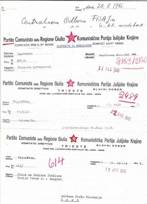PRIMORSKI PARTIZANI, JULIJSKA KRAJINA, KOMUNISTIČNA PARTIJA, 1946/1947
