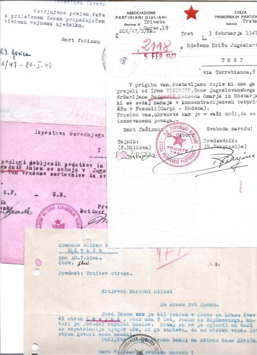 Naprodaj je 10 originalnih listin, ki imajo tudi z žige: "Zveze primorskih partizanov", Komande zbirne baze Divača, K. n.n.o. Lozice, KO Podgrad, Rdeči križ Jugoslavije, Glavni odbor Komunistične partije Julijske Krajine, Glavni odbor Zveze antifašistične mladine Julijske Krajine. Vse se vrti okoli povpraševanja o vojnih ujetnikih ali pa iskanje preživelih svojcev po vojni. Cena za kos je 10 eur.