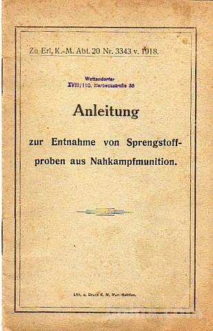 Knjižica o miniciji v prvi svetovni vojni je vezana v kartonske platnice in ima 13 strani teksta v nemščini-latinici, zelo dobra ohranjenost.
