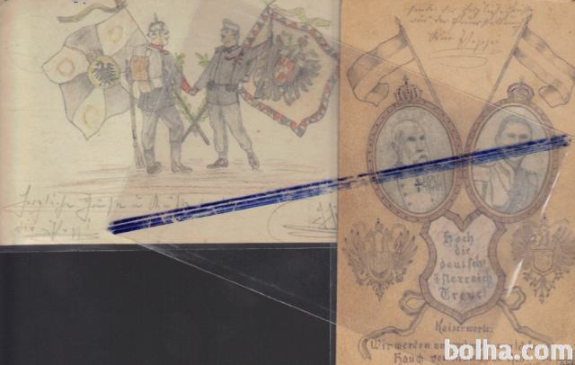 Naprodaj so videne ročno risane vojaške dopisnice, ki so bile poslane med leti 1915 in 16, cene se gibljejo med 15 in 25 eur za kos.