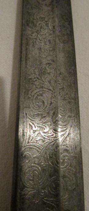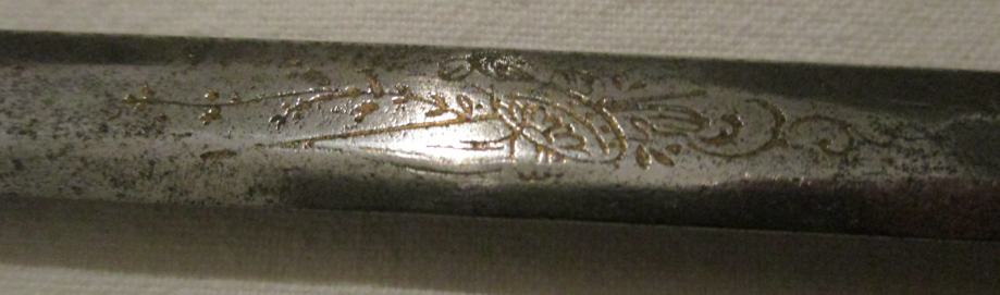 1) Sablja pruskega topniškega častnika, okoli leta 1900, lepo jedkano rezilo, brez nožnice. 350 €.