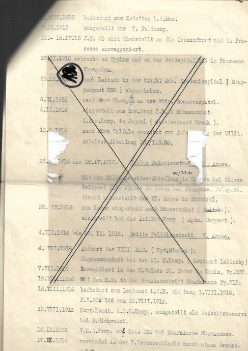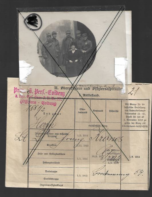 Samo v kompletu se prodajajo dokumenti poročnika Franca Kronesa, ki se je udeležil tudi bojev na soški fronti, Šempetru, Proseku, bil v Ljubljani, na koncu bil zajet in v deportaciji v Italiji. Potipkanih in popisanih je 10 strani (njegov rokopis + rokopisi drugih) + 2 x odločba vojaškega poveljstva o podelitvi čina (kadet v rezervi, poročnik) + fotografija in ovitek.