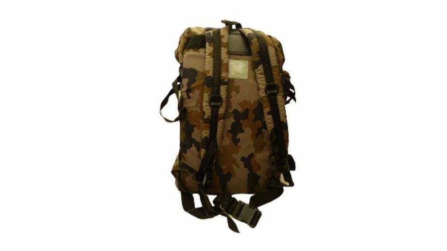 Maskirni vojaški nahrbtnik (nepremočljivo platno, volumen cca 50 litrov, mere 60cm x 30cm x 20cm, večnamenski).