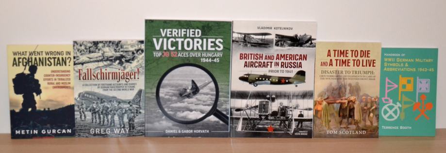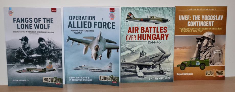 Na voljo več vojaško-zgodovinskih knjig založbe Helion. Na desetine razlilčnih naslovov priljubljene serije @War, ki vsebujejo barvne upodobitve letal, tankov in druge vojaške opreme in so zelo priljubljene bodisi med zgodovinarji, kot tudi med modelarji. Pestra izbira naslovov o "pozabljenih vojnah" in strokovnih knjig.