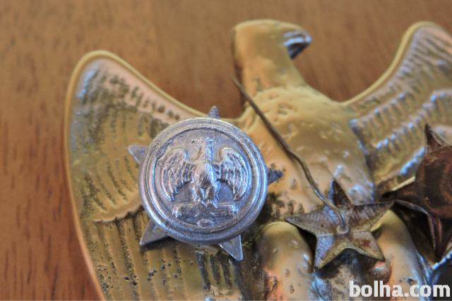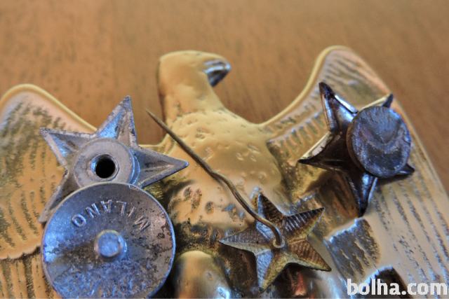 WW1/WW2 IT. FAŠISTIČNIČNA REDKA ZVEZDA Z ORLOM-GUMB,OZNAKA STRANKINIH VISOKIH OFICIRJEV IN VELJAKOV TER IN PEHOTNI OFICIRSKI ZVEZDI -VSE V ORIGINALU IN ODLIČNO OHRANJENO