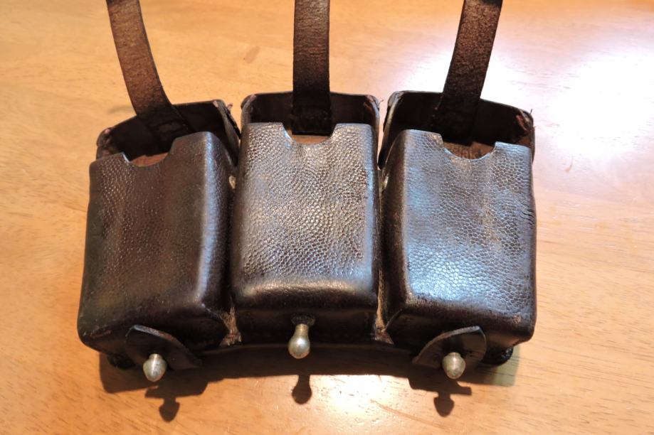 WW2-ORIGINAL IN ZELO REDKA NEMŠKE ARMADE ZGODNJA - 1938 - ZRAČNIH SIL(LUFTWAFFE) ČOKOLADNO RJAVO USNJENA NABOJNICA MAUSER ZA PUŠKO- M 98- 7,9 mm- Z ORIGINALNIMI OZNAKAMI(FLAK) PRIPADNOSTI IN UPORABNIKA,KAR JE REDKOST V TOP STANJU. (za slikovo ponazoritev uporabljeni nenevarni šolski naboji) ,NOMiNIRANE CENE PA SI OGLEJTE PE-BEYENIH MILITARIA STRANEH..