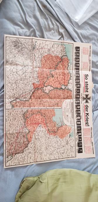 Prodam zemljevid So steht der Krieg! Karta prikazuje fronte konec julija 1915 ter slike Nemških Avstrijskih in Madžarskih generalov. Odlično ohranjena karta možna menjava za Nintendo in Playstation stvari.