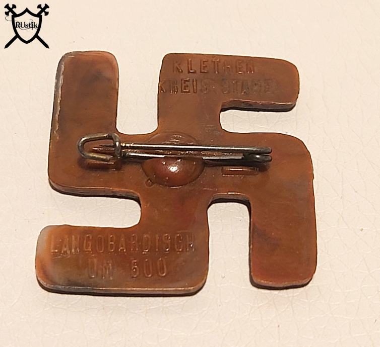Značka je iz bakelita (predhodnik plastike)