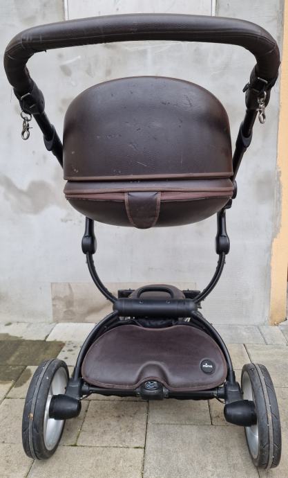 Prodam otroški voziček mima xari z ogrodjem 2v1 – košara in športni sedež; na fotografiji v oglasu je prikazan v različici s športnim sedežem.