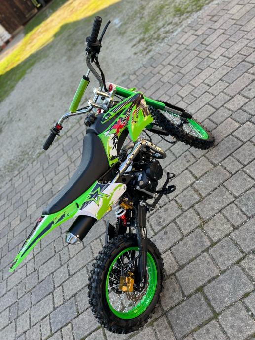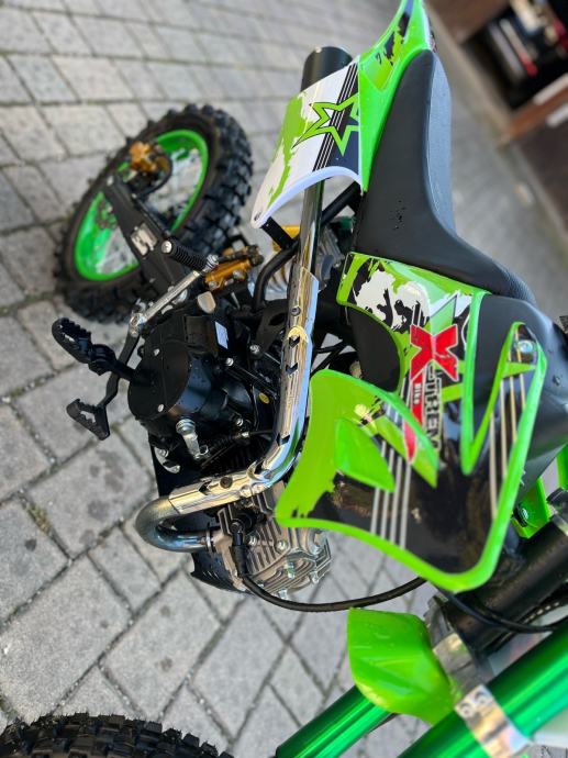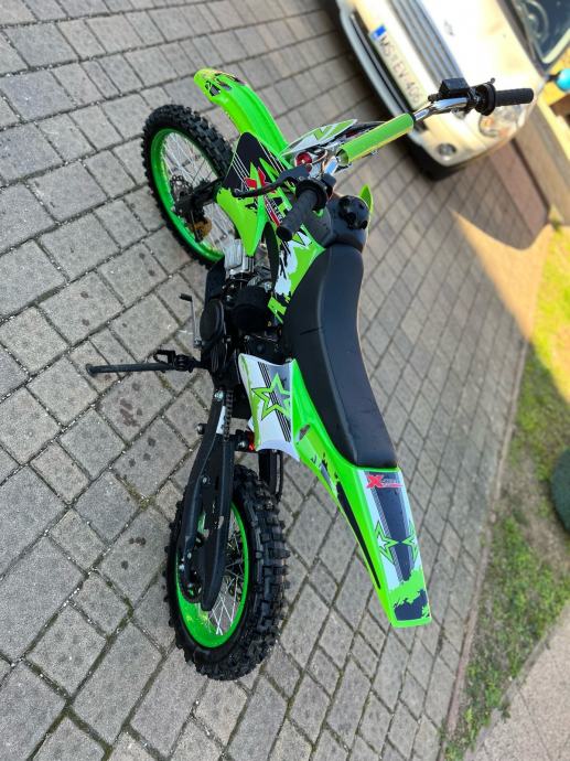 Prodam lepo ohranjen pitbike/mini kros motor znamke X-Moto. 125cc, ročni menjalnik, primeren je za mladino in odrasle. Motor je nov, prižgan je bil vse skupaj le 2x ter vse skupaj bil vozen nekje slabo 1h, višina sedeža je 86cm. Prodajam ga ker samo stoji v garaži in je v napoto. Zraven je še čelada (velikost M) ki je že vključena v ceno.