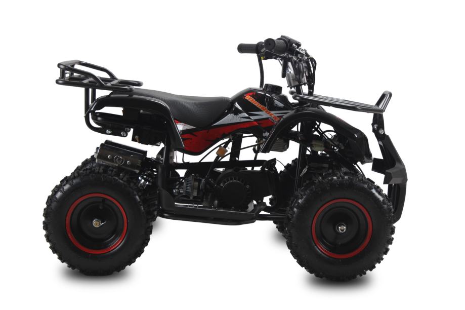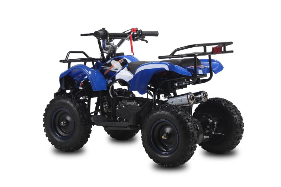 Otroški štirikolesnik Torino s prostornino 49cc je namenjen začetnikom. Prednost tega štirikolesnika je električni zagon, velika 6" kolesa, LED luči, aluminijast polavtomatski zagon, visokokakovostne plastične tekalne površine in daljinski upravljalnik s funkcijo start/stop.
