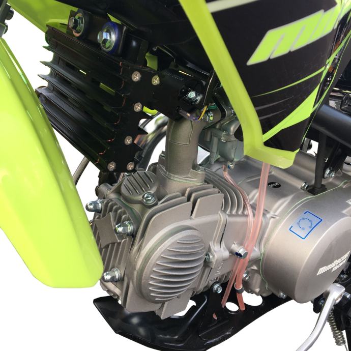 Nov model pit bike z velikim okvirjem, s kakovostnim motorjem in privlačnim dizajnom - tako bi lahko v enem stavku povzeli prednosti tega kolesa. Motocikel z zelo zmogljivim motorjem YX140. Uporabljeni okvir je trenutno največji okvir, ki je na voljo na trgu. Dopolnjen je z večjimi kolesi 17" spredaj in 14" zadaj.