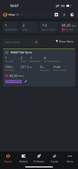 Zadeva deluje na sistemu HIVE OS (obstaja tudi aplikacija za telefon).