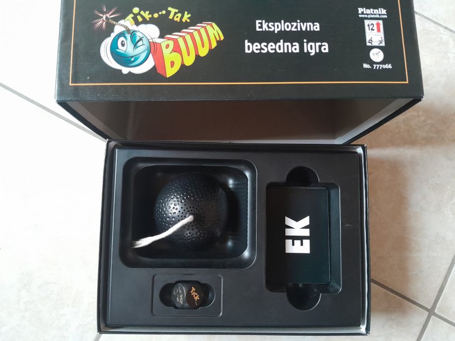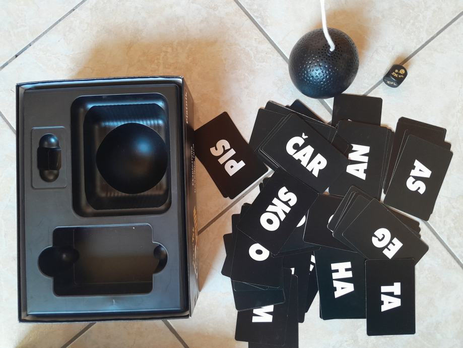 Prodam zanimivo besedno igro s kartami črk, kocko in kroglo, kjer je lahko od 2 -12 igralcev. Deluje na baterije, da bomba eksplodira.