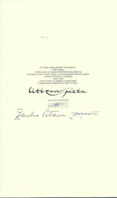 Založništvo in izdelava [Ljubljana] : Litterapicta, 1992 (Ljubljana : Planprint)