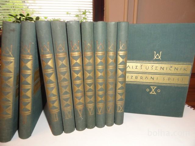 Knjige, zbirka IZBRANI SPISI, ALEŠ UŠENIČNIK, 10 KNJIG, ZALOŽILA JUGOSLOVANSKA KNJIGARNA 1939 DO 1941, trde platnice, vsaka knjiga preko 300 strani, zelo dobro ohranjene, prodajajo se v kompletu 10 knjig za 100 evrov.
