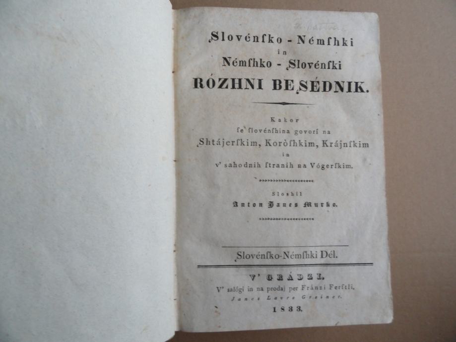 ANTON JANEZ MURKO, ROZHNI BESEDNIK, 1833