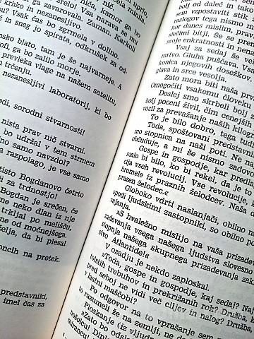 Knjiga ima na več straneh oznake pri besedilo, podčrtano besedilo in zabeležke.
