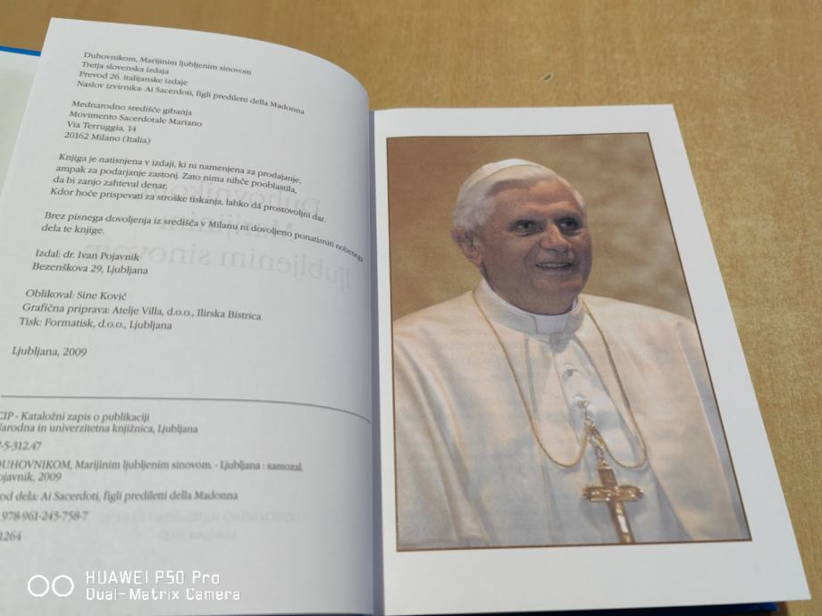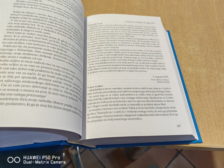 »Poklanjam se vam, ki ste prišli sem gor v moje svetišče, da se svoji nebeški materi zahvalite za knjigo.
