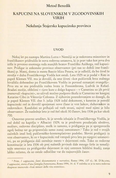 KAPUCINI NA SLOVENSKEM V ZGODOVINSKIH VIRIH; NEKDANJA ŠTAJERSKA KAPUCI