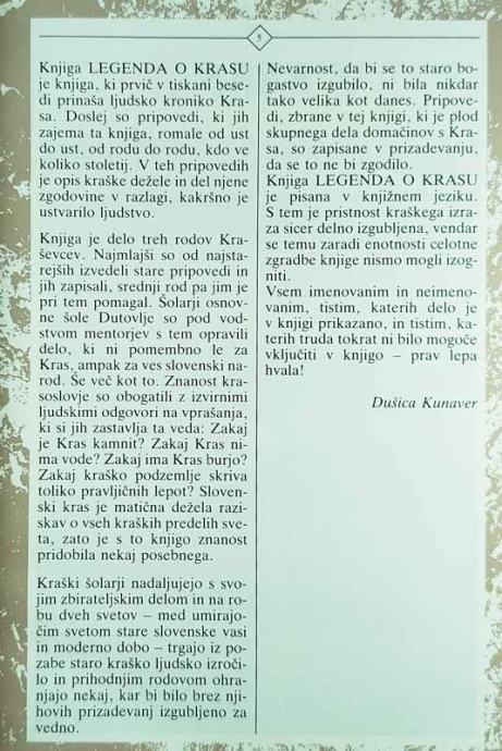 LEGENDA O KRASU, Dušica Kunaver