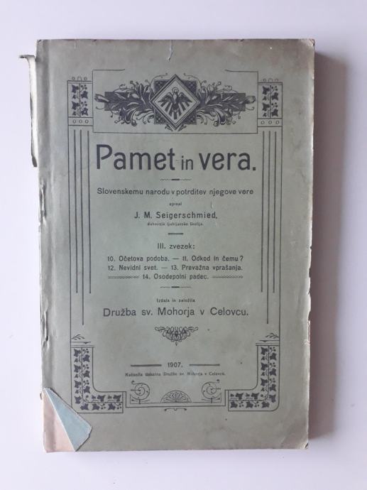 PAMET IN VERA III. ZVEZEK, J.M.SEIGERSCHMIED, 1907