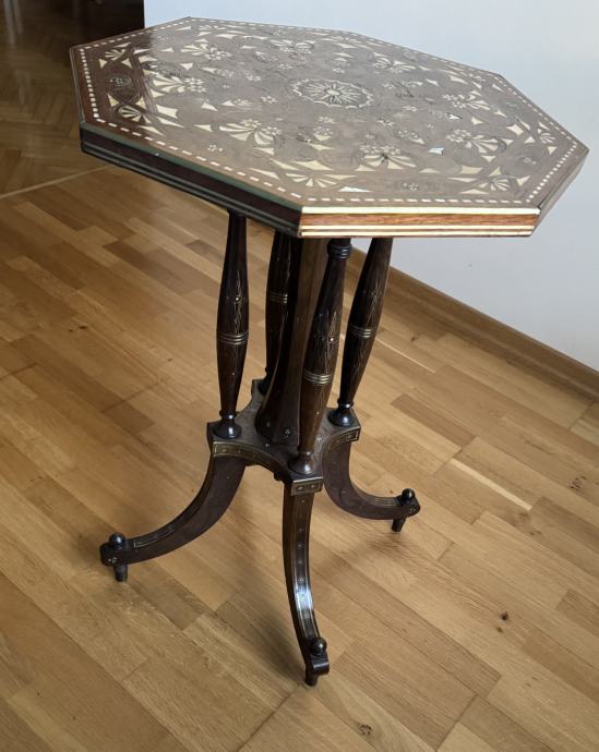 Prodam izredno staro perzijsko mizico -ročno delo intarzija , premer 53 cm, višine 73 cm . Cena po dogovoru . inf 041 66 22 55