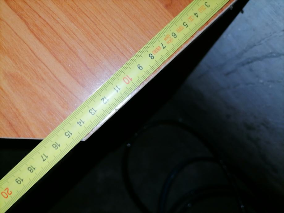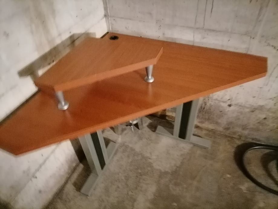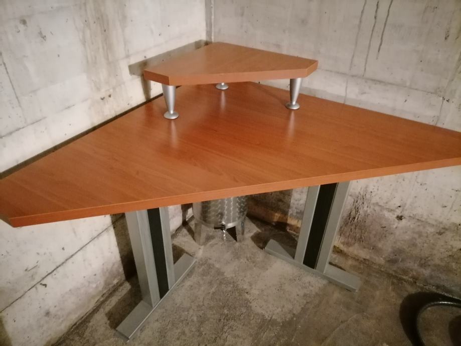 Barva češnja / hruška. Konkretna in stabilna miza na kovinskem podnozju. Dodana mizica za monitor.