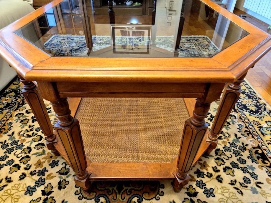 Prodam dobro ohranjeno vintage mizo z zgornjim steklenim delom. Mere so 130 x 78 x 53cm. "Made in USA".
