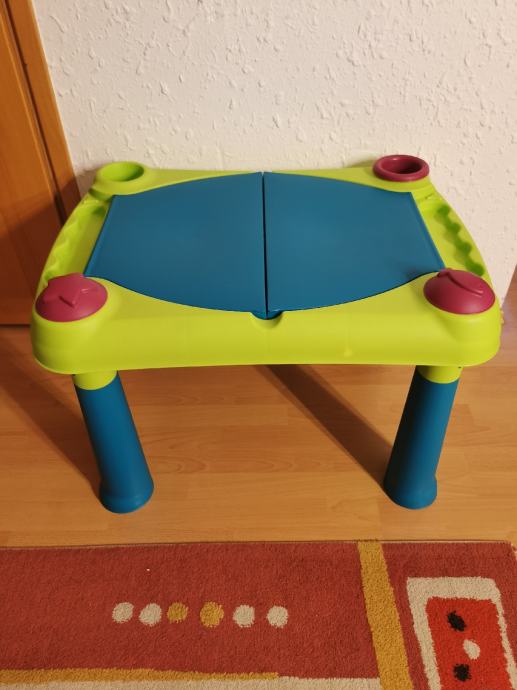 Prodajam rabljeno otroško mizico v živahnih barvah, primerno za igro in ustvarjanje. Mizica ima posebno obliko s preklopnimi modrimi površinami in je izdelana iz trpežne plastike. Odlična izbira za otroško sobo, kjer bo popestrila prostor in omogočila različne aktivnosti. Za več inf. vsiftar@gmail.com