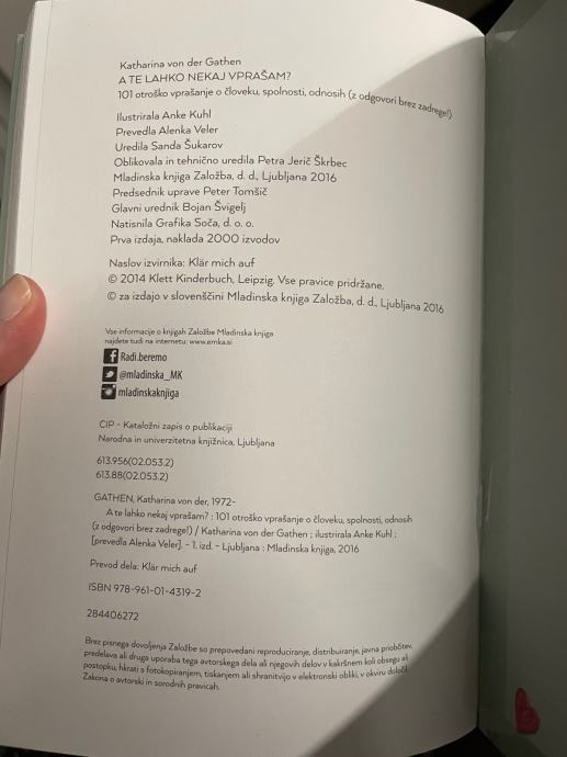 Iščemo mladinsko knjigo z naslovom "A te lahko nekaj vprašam?" avtorice Katharine von der Gathen.