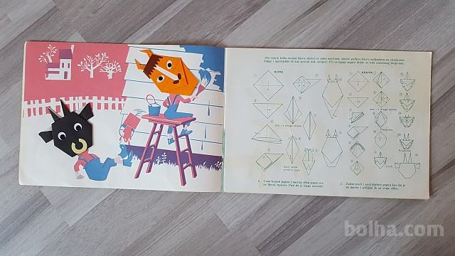 Knjiga je primerna za otroke, odlično prikaže izdelavo različnih origamijev: konj, krava, kokoš, riba, zmaj, labod in žabica.