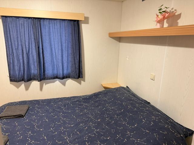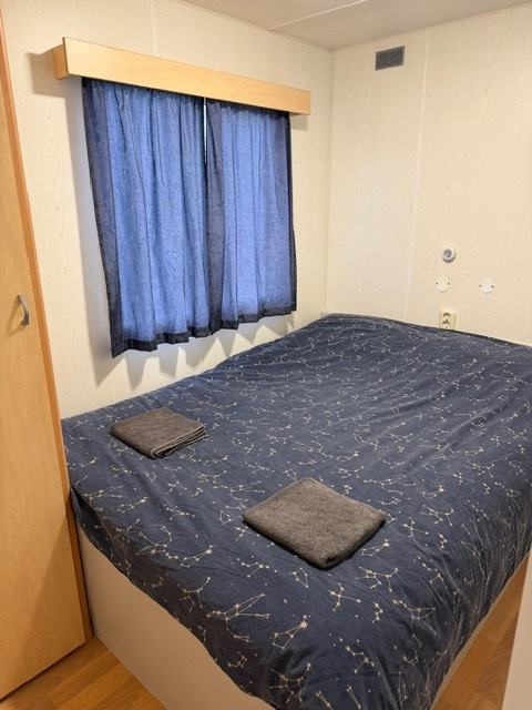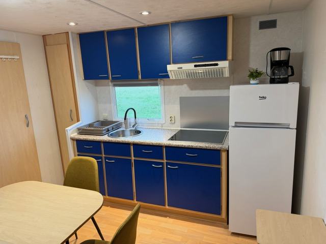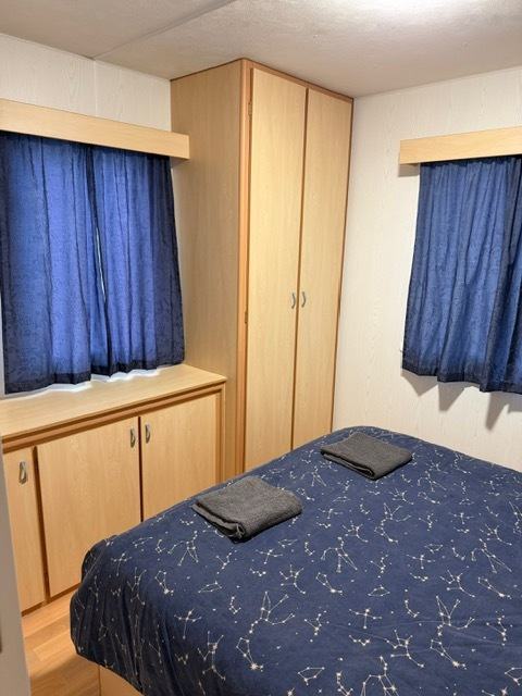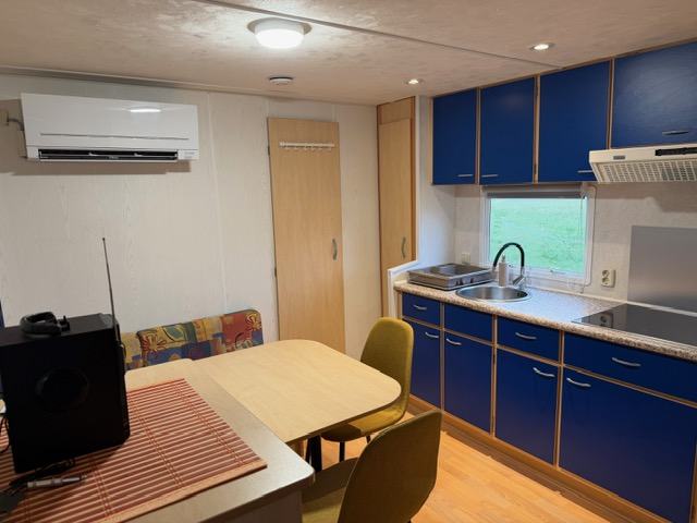 Ima dve ločeni spalnici, tuš, WC, dnevni prostor z popolnoma opremljeno kuhinjo