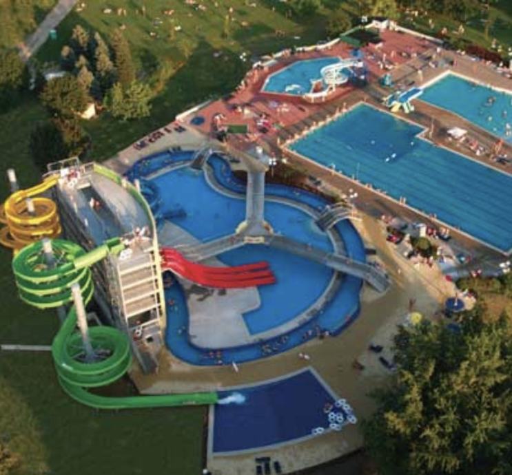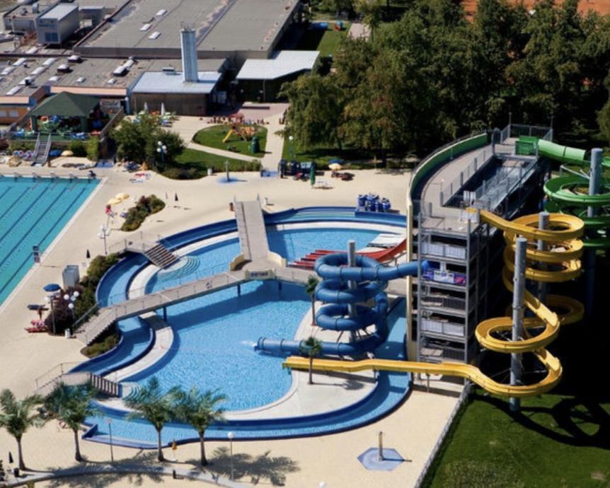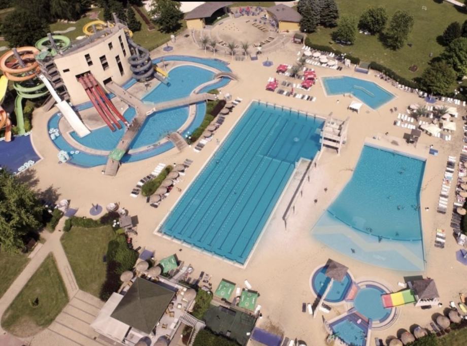 Nahaja se v neposredni bližini termalnega parka z zunanjimi in notranjimi bazeni ter savnami ob igrišču za tenis
