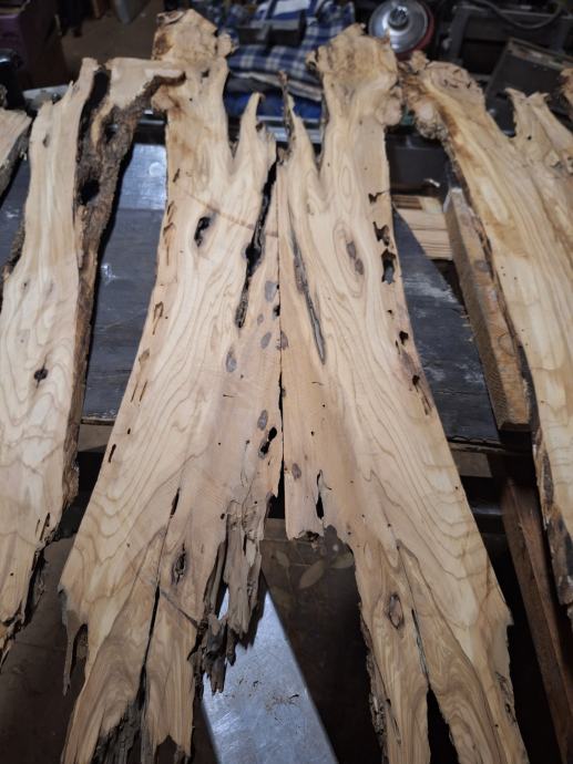 Les olive, zelo razgibane teksture, 80x12x1.1 cm, cena 3 do 8 eur za kos, vseh 10 kosov je cena 40 eur.