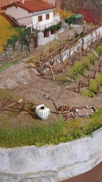 Izredno lepa maketa družinske zidanice v vipavski dolini, profesionalno izdelana, fini detajli, ki žal na sliki niso vidni....dolžina 87cm, globina 57cm, višina 30cm. . ( 300 ur dela)